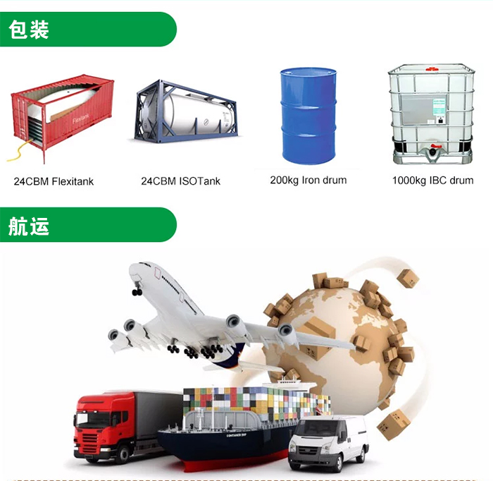 根據(jù)客戶的訂單量,包裝可選噸桶,鐵桶,塑料桶,液袋,以及罐式集裝箱。